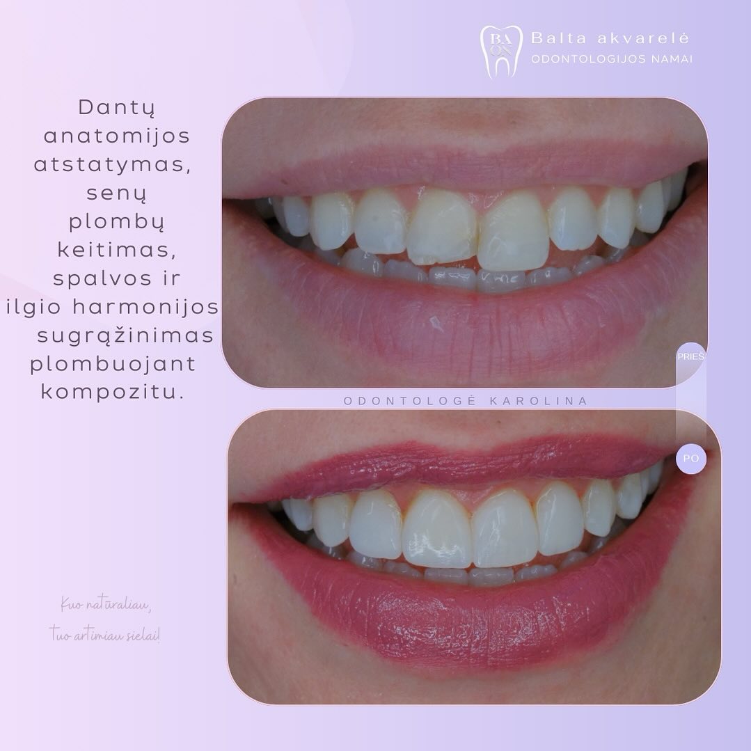 Natūraliai atrodanti šypsena reikalauja ne tik techninių žinių, bet ir gebėjimo matyti formą, šviesą bei proporcijas. Karolina kruopščiai atkuria dantų anatomiją, spalvinius perėjimus ir tekstūrą taip, kad restauracijos vizualiai nesiskirtų nuo natūralių dantų.